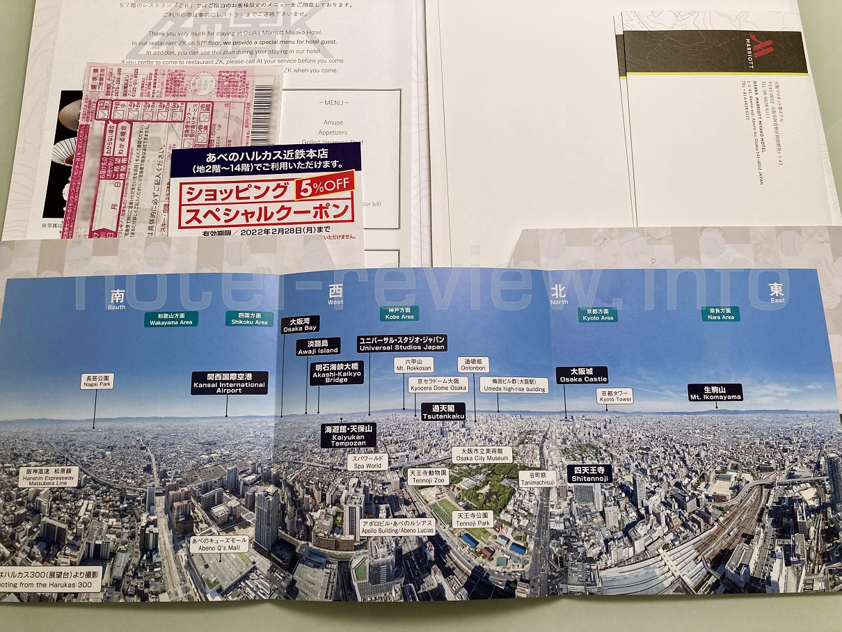 テーブル横のレターセットの中にはパノラマガイドまで用意されています。大阪の地理に不慣れでもこれを見ながら方向や名所の理解ができますね。