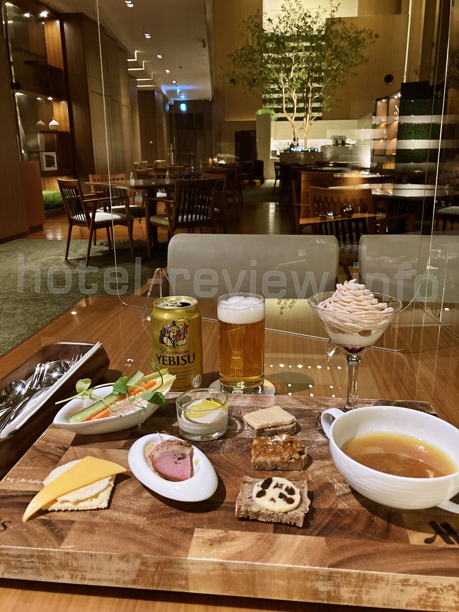 やはりラウンジで軽い食事とお酒の両方が頂けるのは素晴らしいですね。この前の宿泊がメズム東京だったこともあってちょっと違いを感じてしまいます。