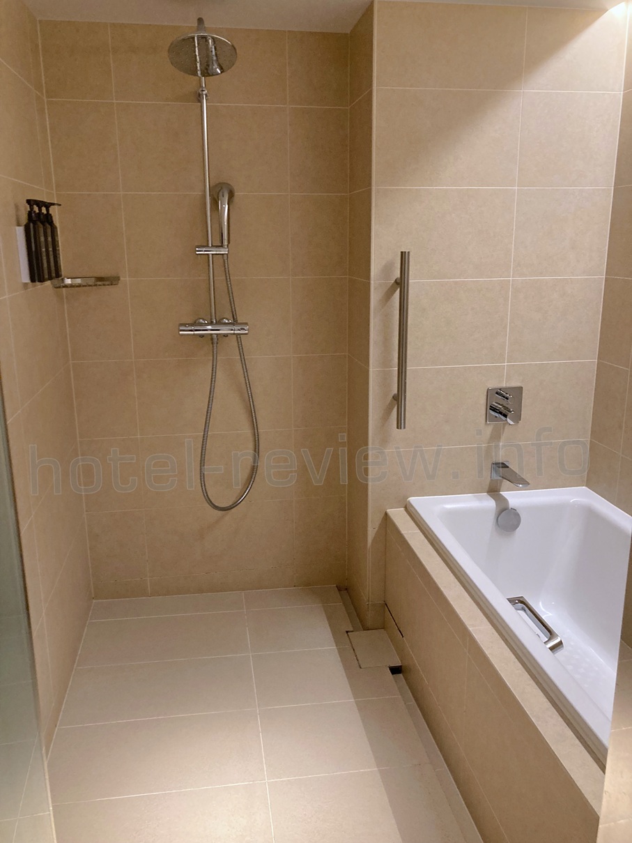 左手にはバスルームがあります。洗い場・バスタブ付きの本格的な浴室です。日本人にはこれですね。
