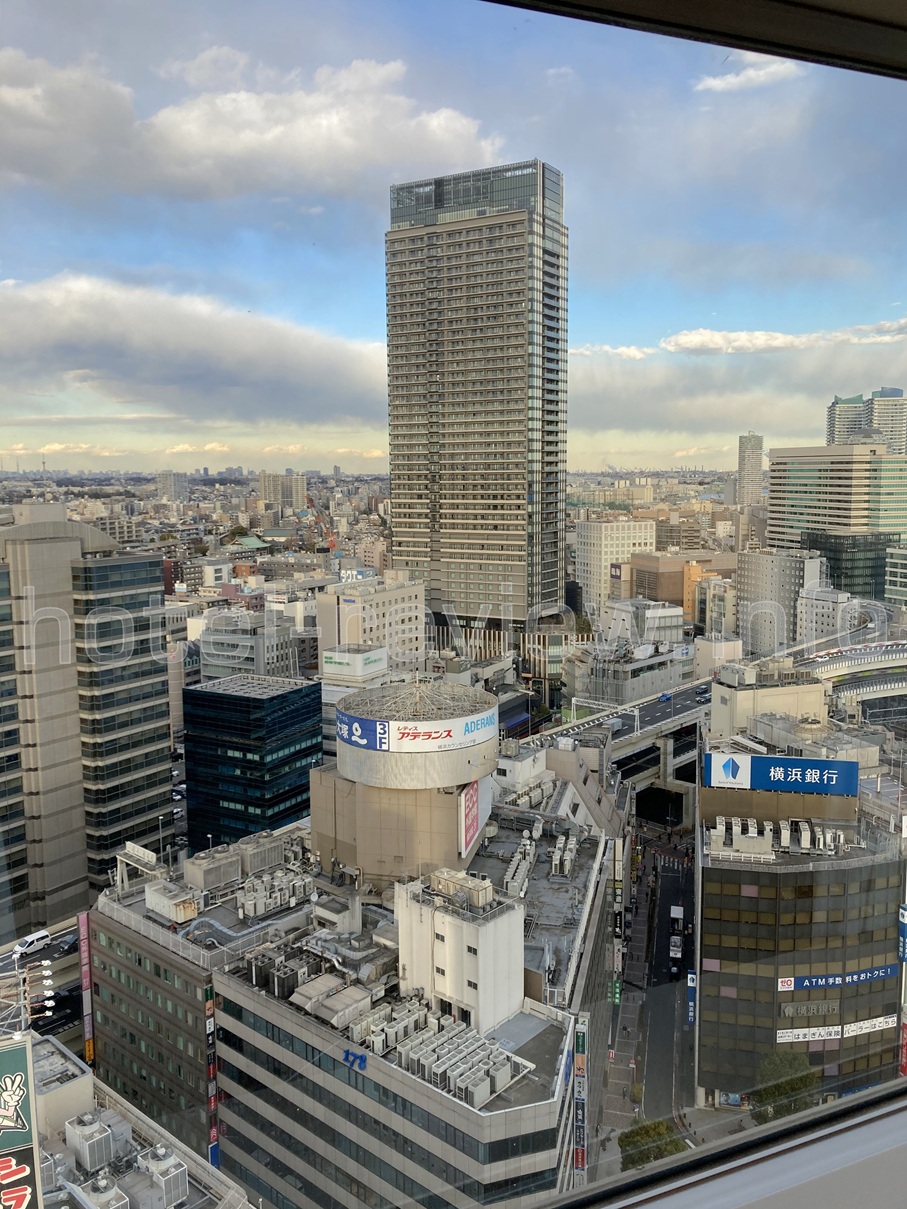 眼下には横浜駅前のロータリー、そして綺麗な夕焼けが望めました。素晴らしいですね。