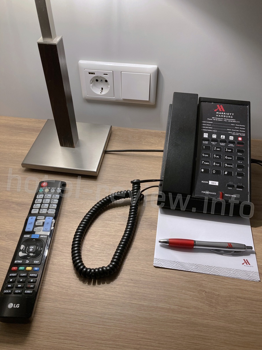 そしてベッドサイドにはUSBとUSB-C給電があります。コンセントもありますが、ドイツで一般的なCタイプなので日本からお越しの場合はアダプターをお忘れなく。