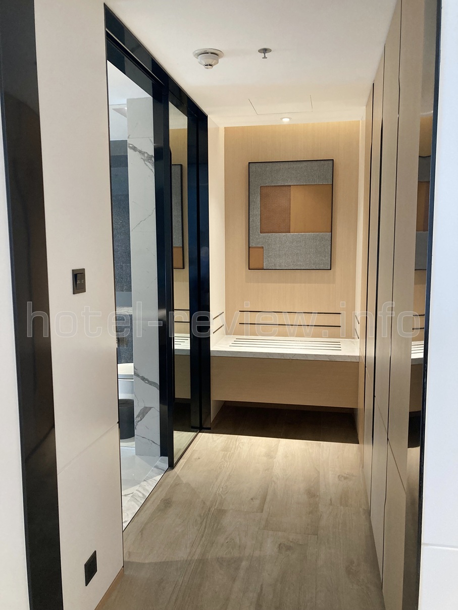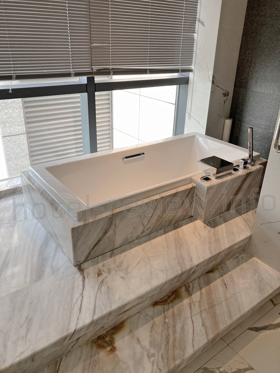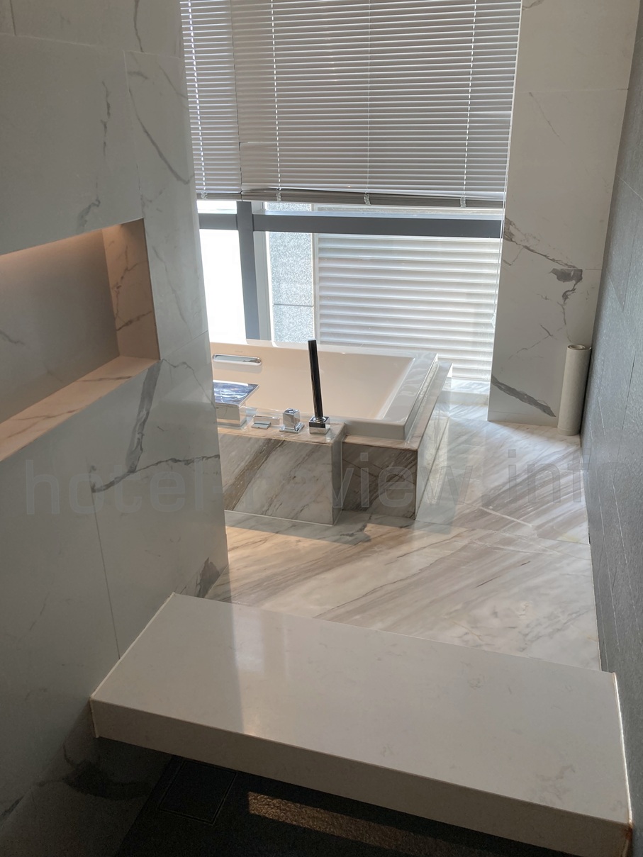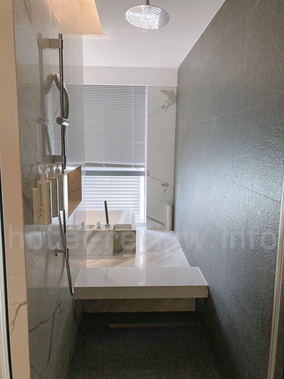そして反対側から回ってくるとこちらはそのままドアもない部屋側になっています。しかもよりによって滑りそうな大理石の段があります(笑)。
