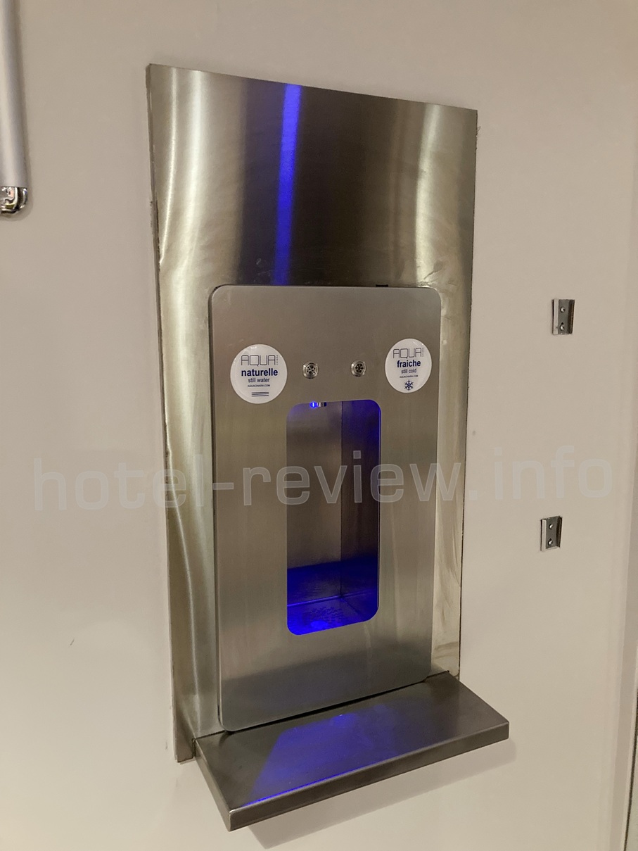 あと、客室にミネラルウォーターが見当たりませんが「こちらのグラスにご自分で注いでお飲みください」というスタイルです。