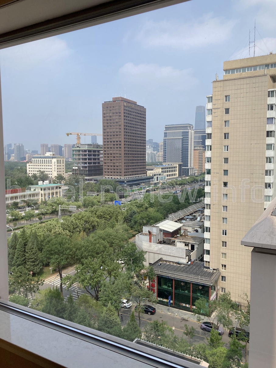 窓からは天安門に通じる北京一の目抜き通り「建国門外大街」が見えます。